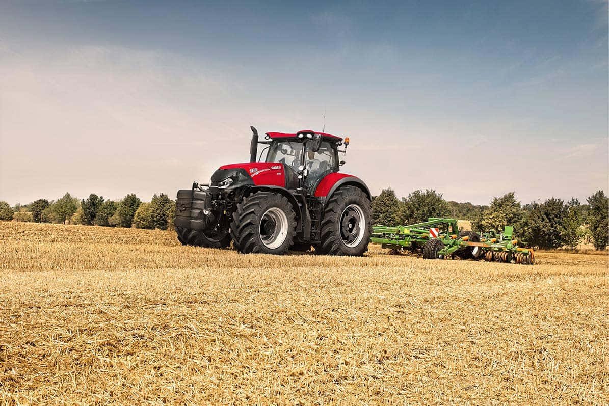 A Tractor Is Driving In The Field Wallpaper -
