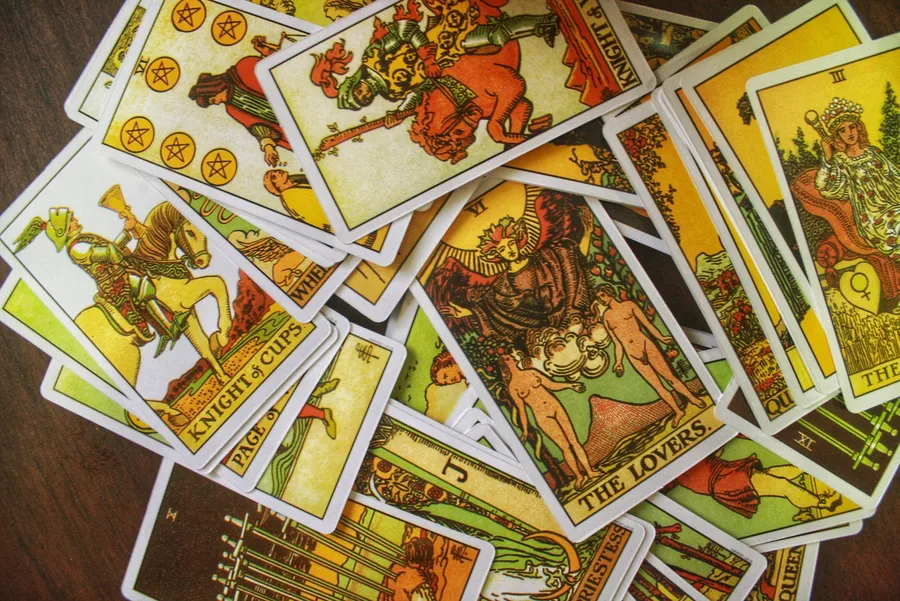 A Pile Of Tarot Cards On A Table -