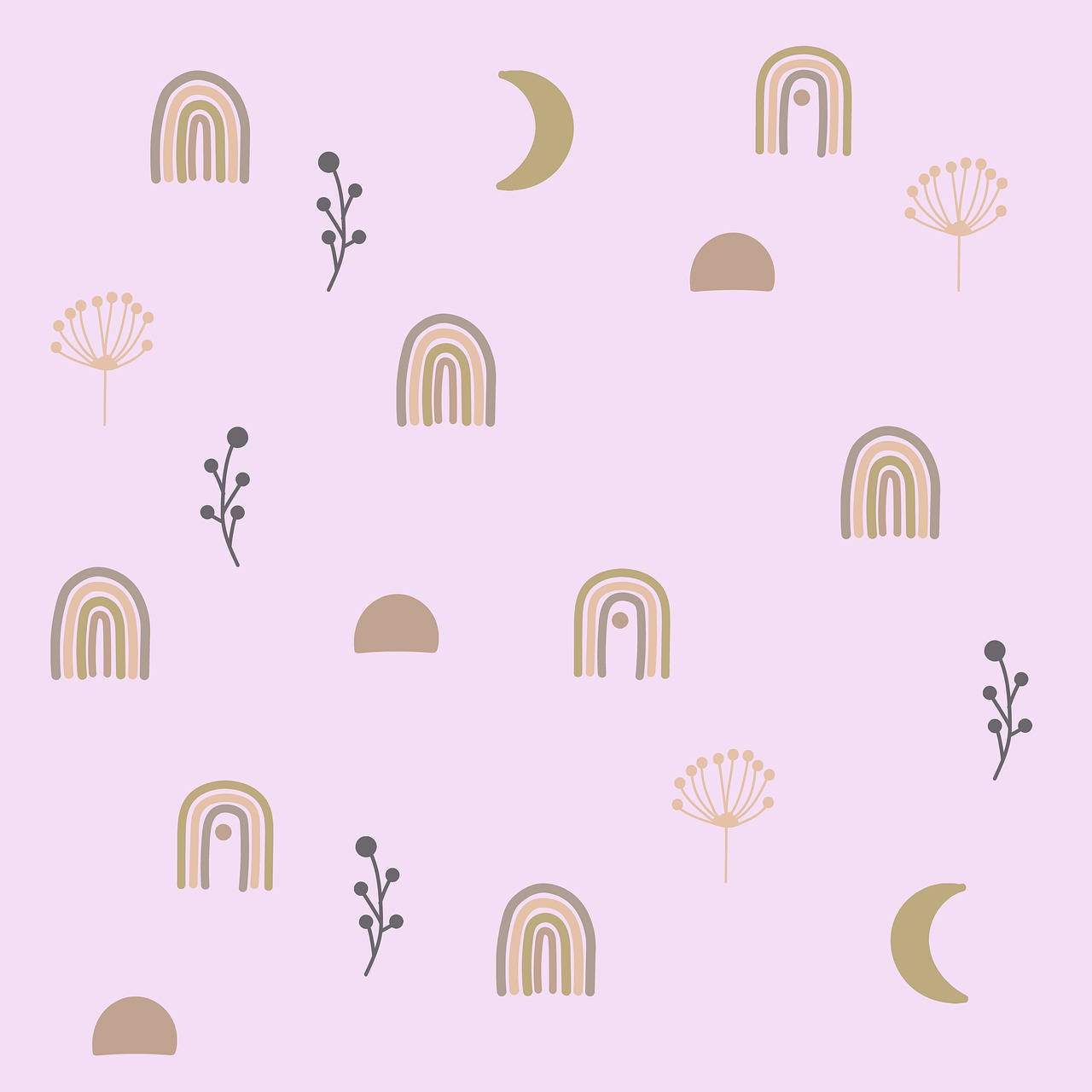 Related A Pink Background With A Rainbow, Moon And Flowers Wallpapers