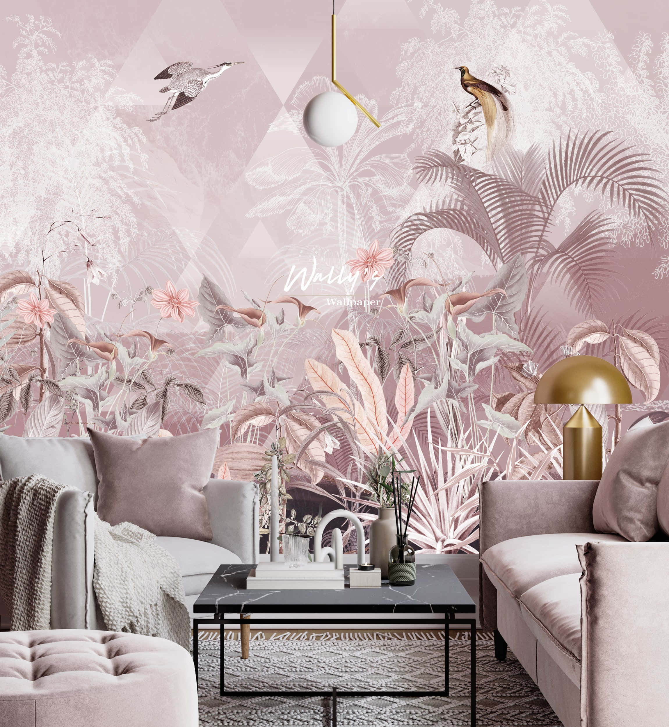 A Pink Living Room With A Pink Wall Wallpaper