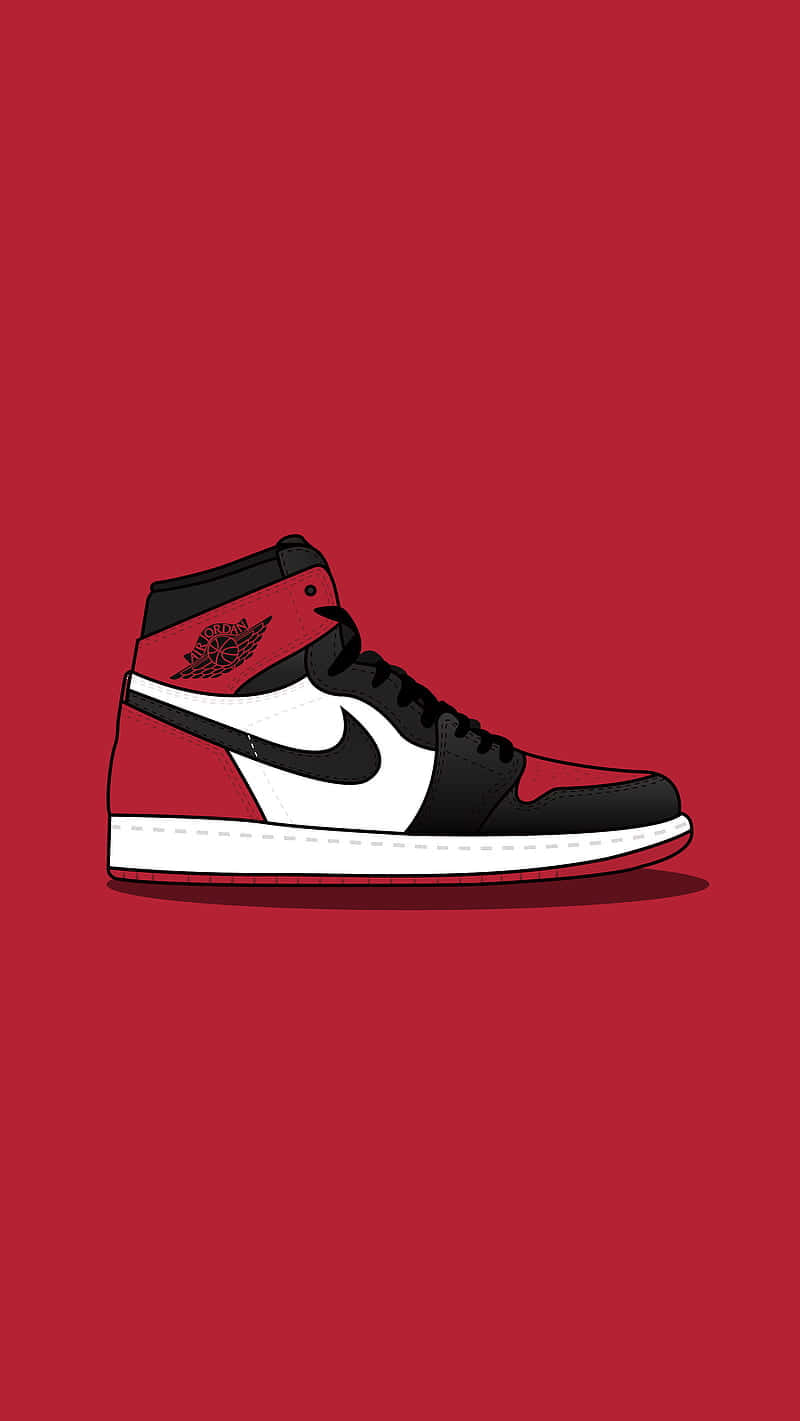 A Red Background With A Black And White Jordan Shoe Wallpaper
