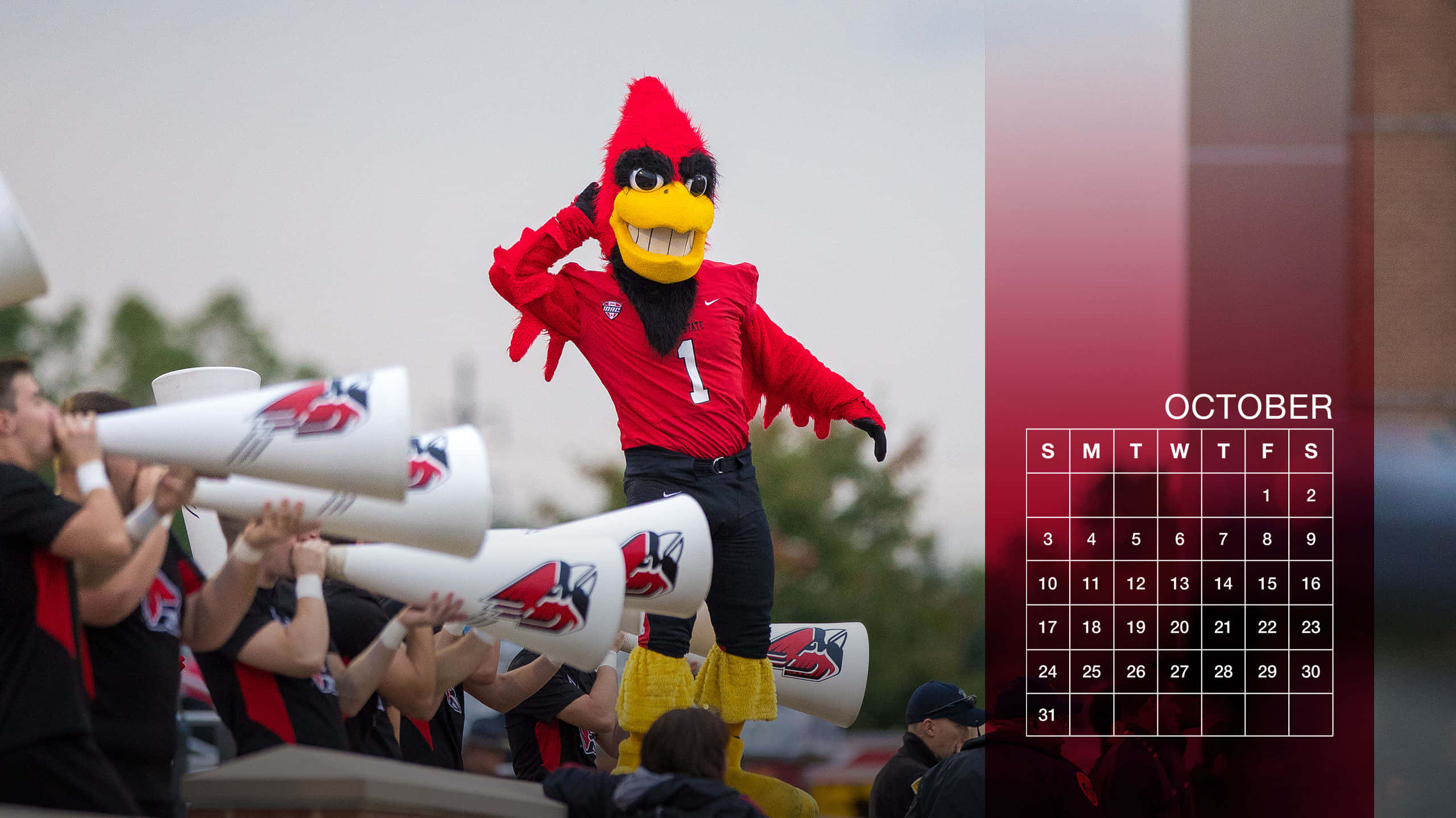 A Red Cardinal Mascot Is Holding A Horn Wallpaper