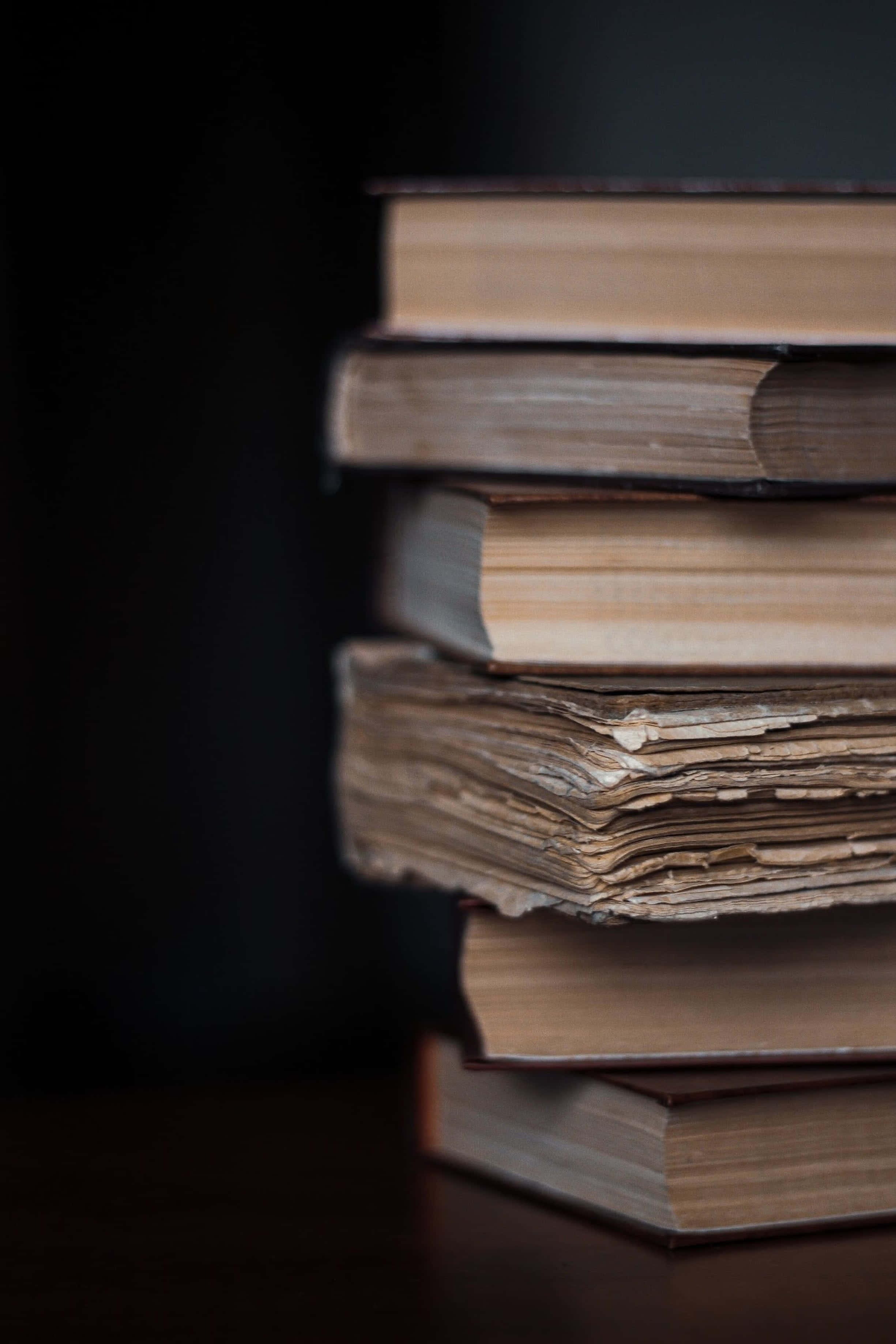 A Stack Of Books On A Table With A Dark Background Wallpaper -