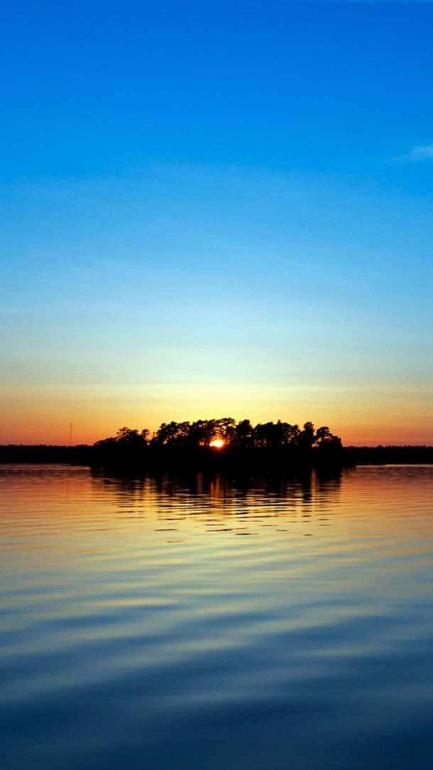 A Sunset Over A Lake With Trees On It Wallpaper