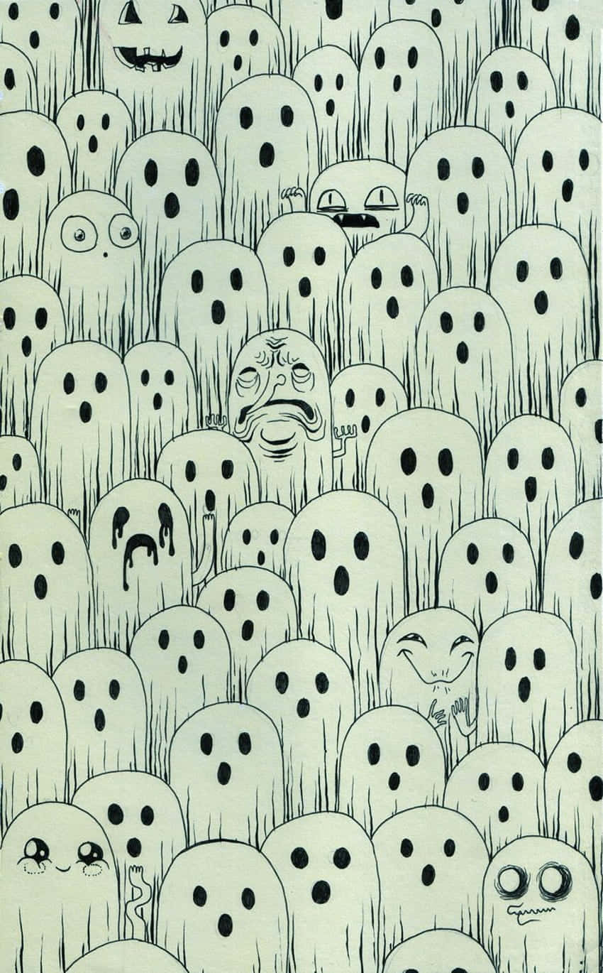A Black And White Image Of Ghosts Wallpaper -
