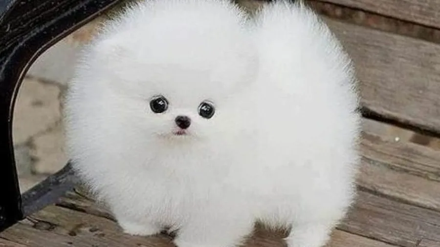 Related A White Pomeranian Puppy Standing On A Wooden Bench Wallpapers
