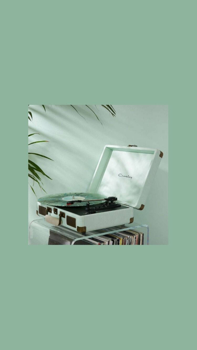 A White Record Player With A Plant On Top Wallpaper