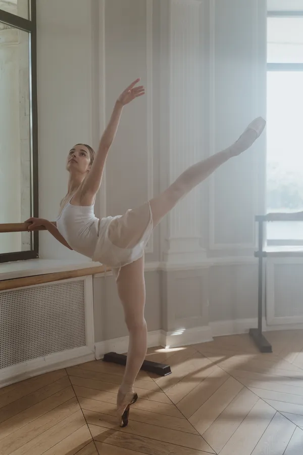 A Young Ballet Dancer Is Practicing In A Room -