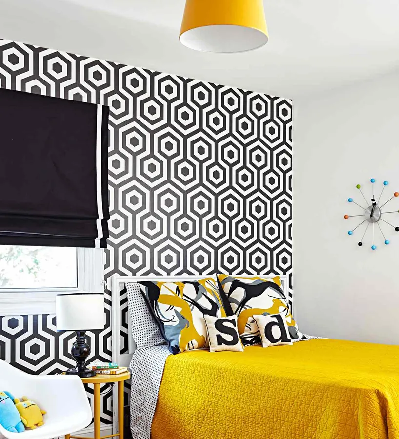 Gray And Yellow Geometric Living Room Wallpaper -