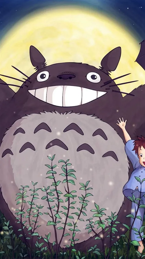 A Group Of People Standing In The Grass With Totoro Wallpaper -