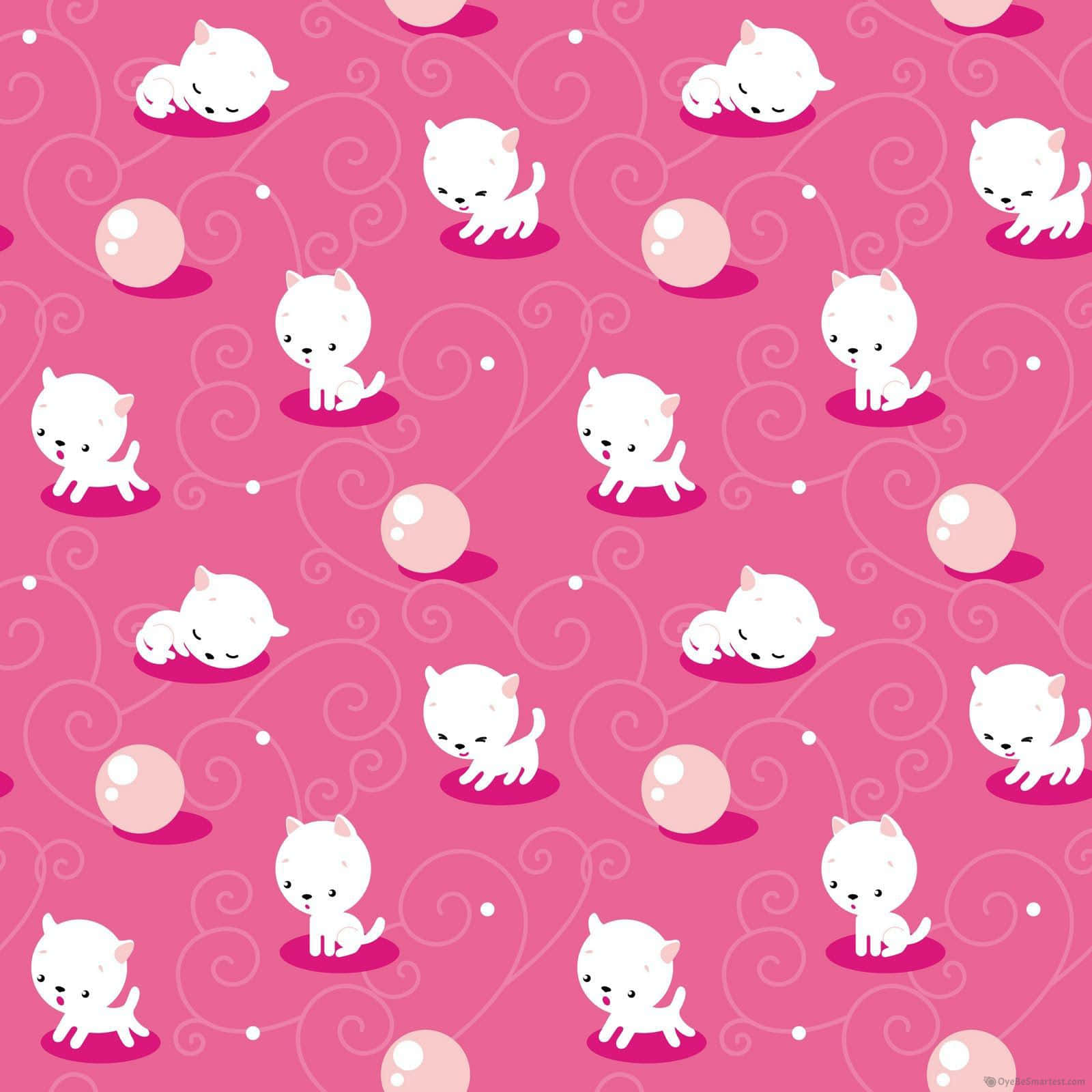 Cute Cat Pattern With Pink Background Wallpaper -