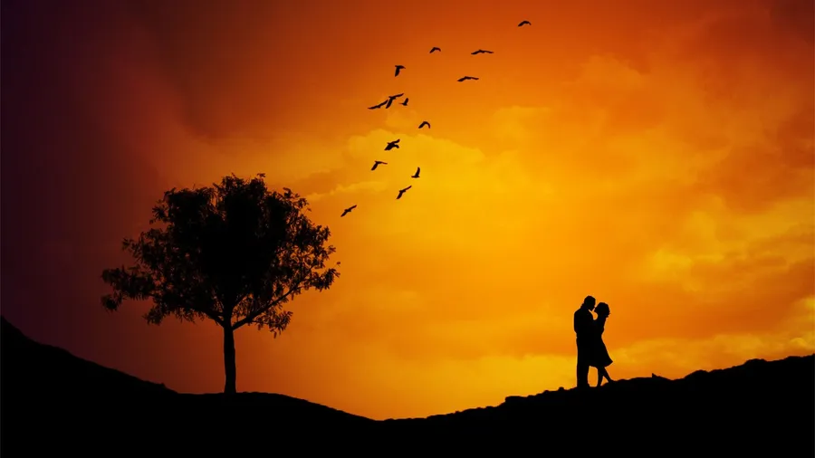 Sunset Couple With Birds Wallpaper -