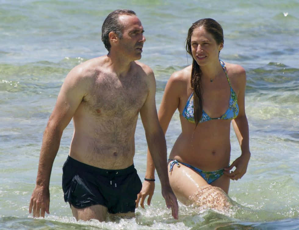 Alex Corretja Wading In Beach With Wife Wallpaper -