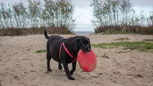 Overweight Labrador Retriever Sitting In A Park Wallpaper -