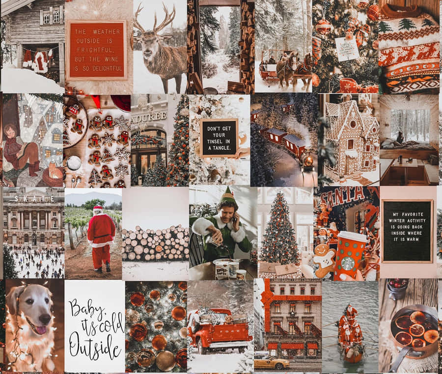 Create A Winter Wonderland In Your Home With A Festive Aesthetic Collage Wallpaper -