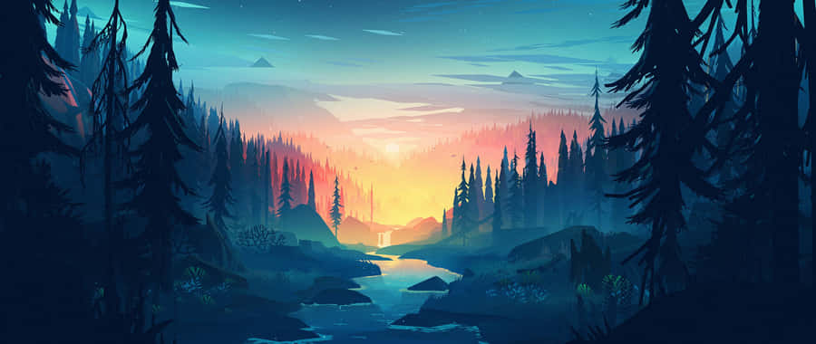 Digital Artwork Depicting A Mystical Forest Wallpaper -
