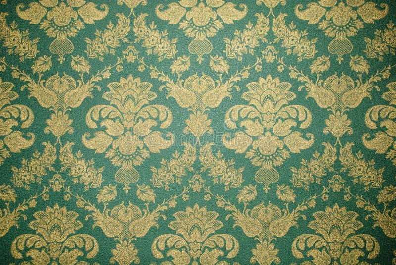 An Old Wallpaper With Gold And Green Floral Patterns -