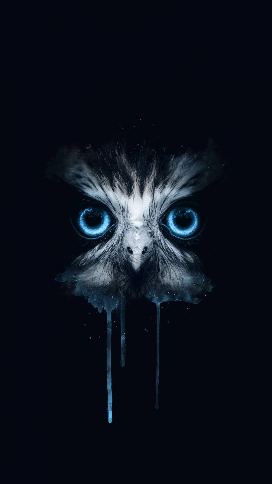 An Owl With Blue Eyes On A Black Background Wallpaper