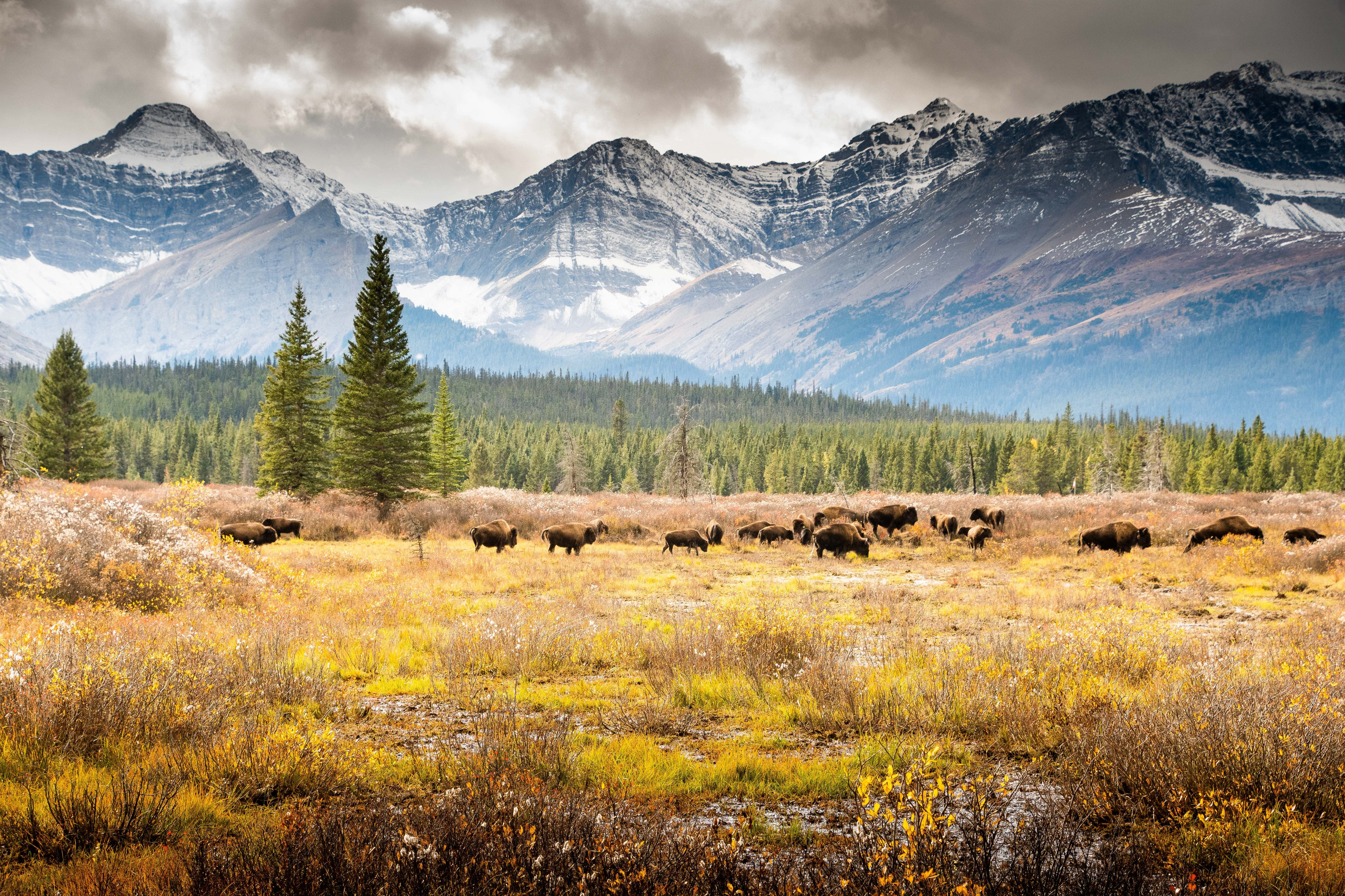 Related Animals In Field Near Tundra Mountains Wallpapers