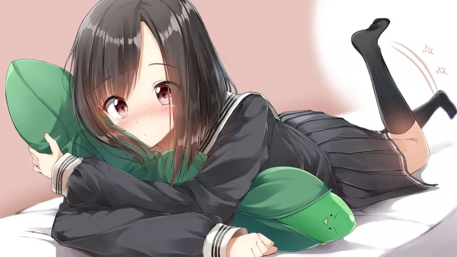 Anime School Girl Cute Black Hair Wallpaper -