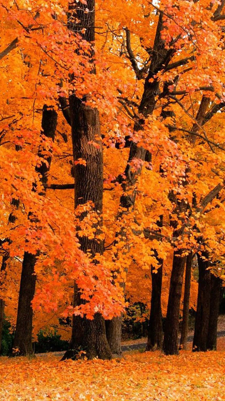 “experience The Splendor Of Autumn Right On Your Iphone Screen With This Stunning Fall Wallpaper.” Wallpaper -