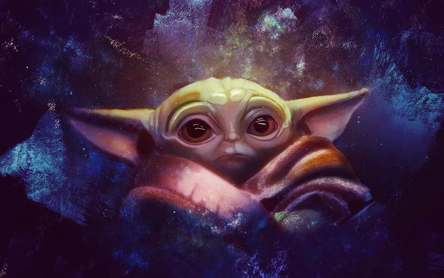 Baby Yoda Cartoon Painting Wallpaper -