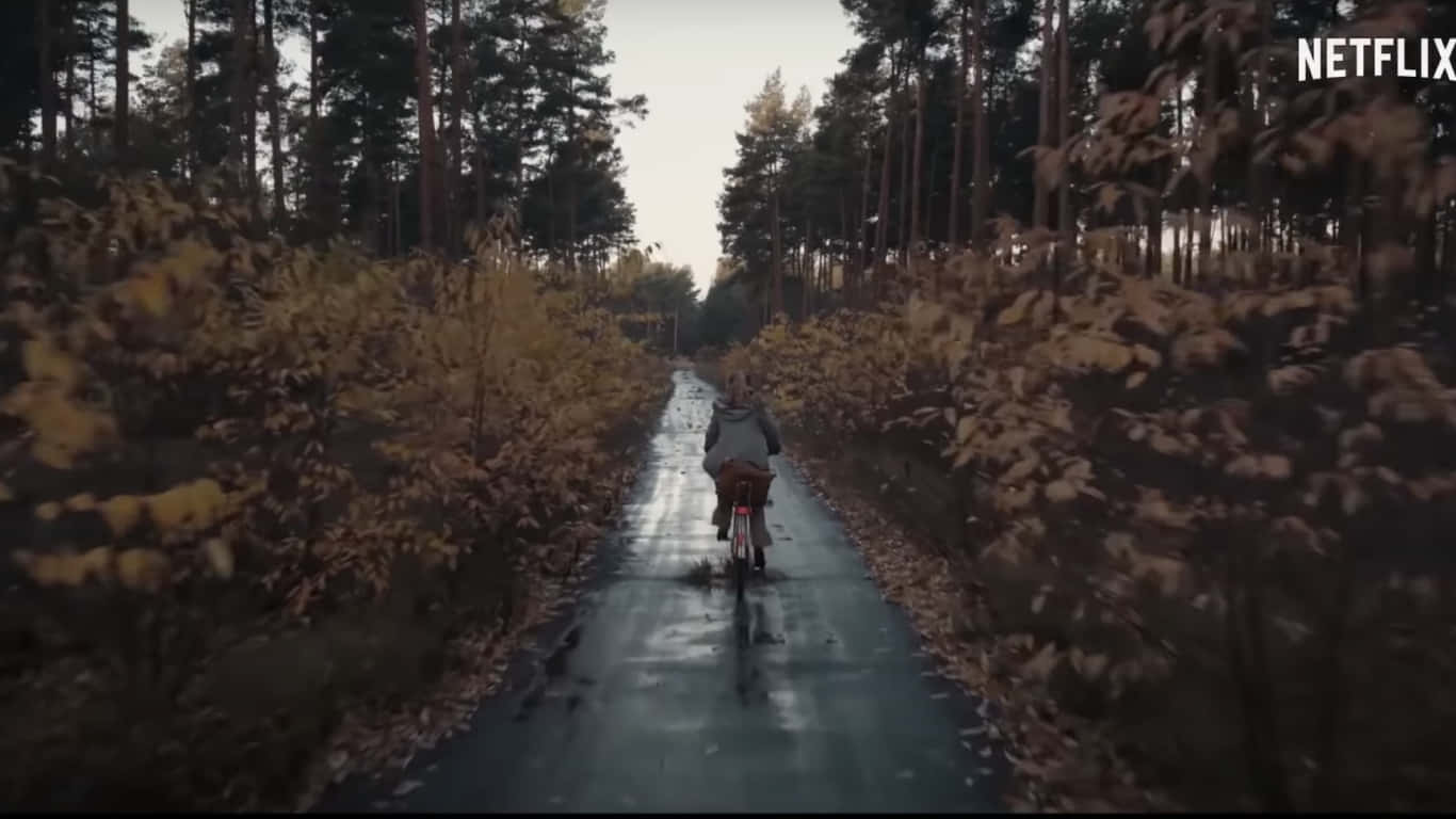 Biking In The Forest Scene In The Dark Netflix Series Wallpaper -