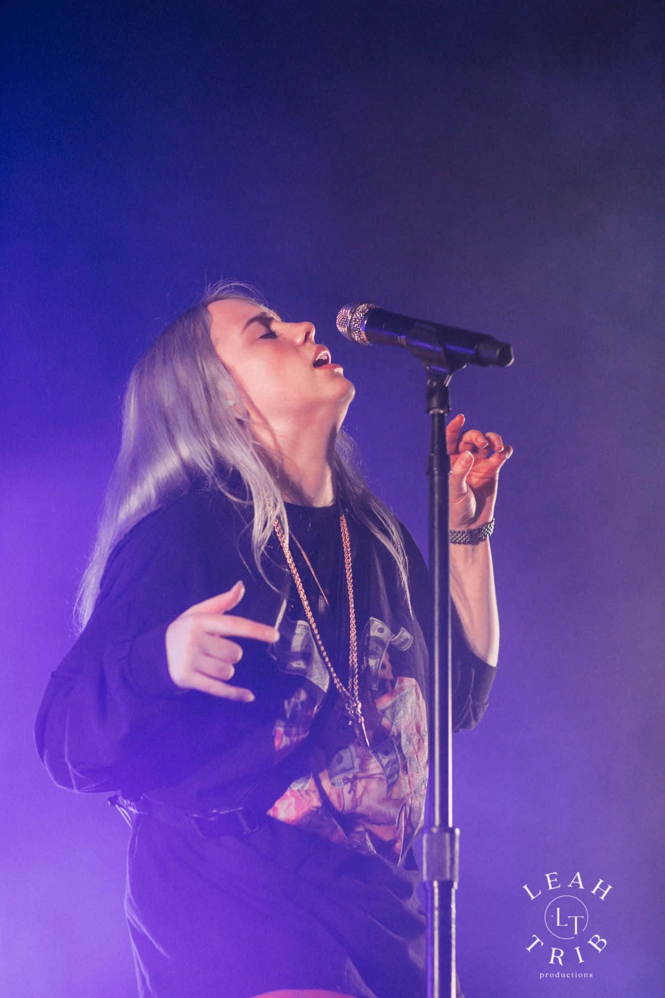 Singing Billie Eilish Purple Stage Lights Wallpaper -