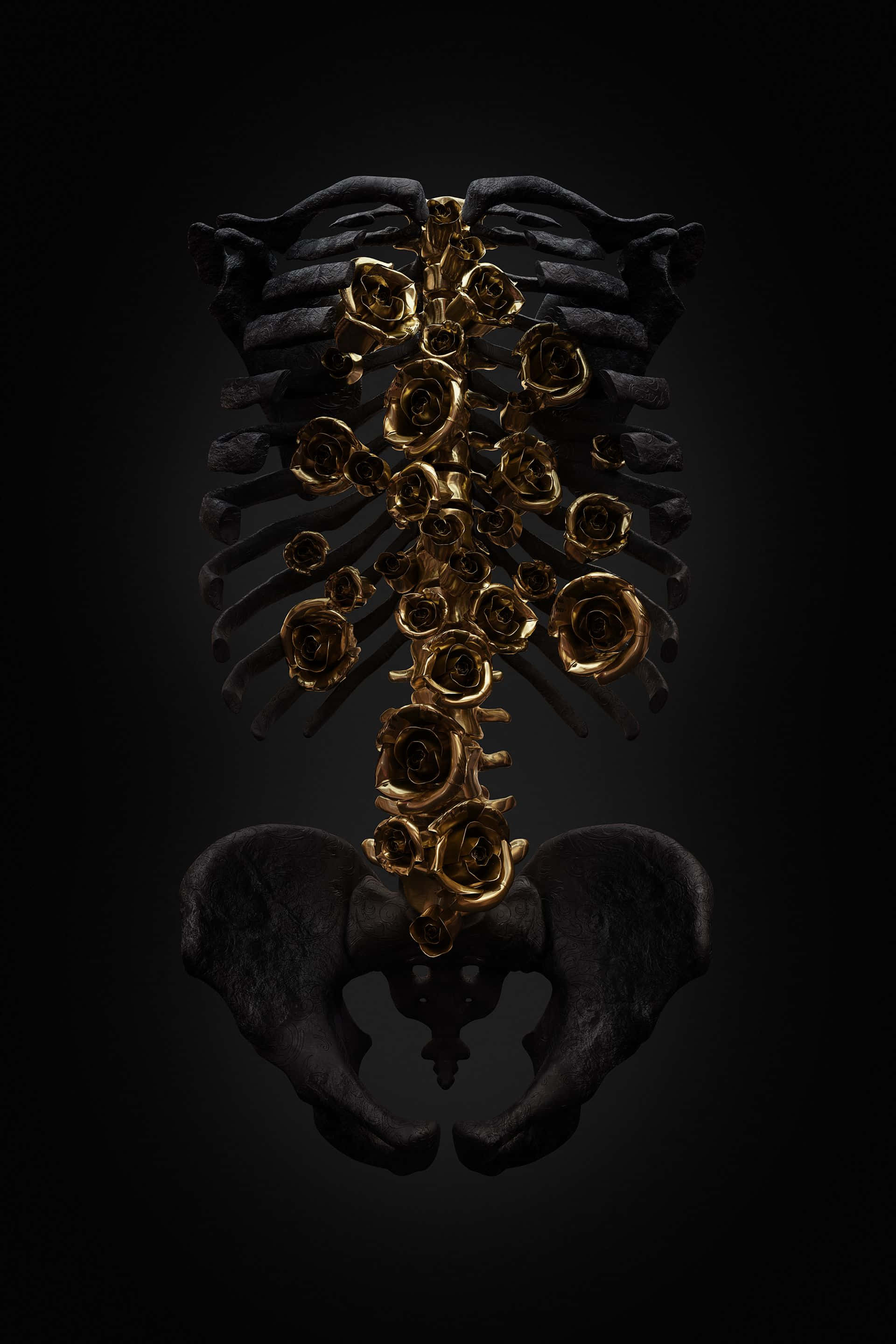 Skulls Black And Gold Aesthetic Wallpaper -