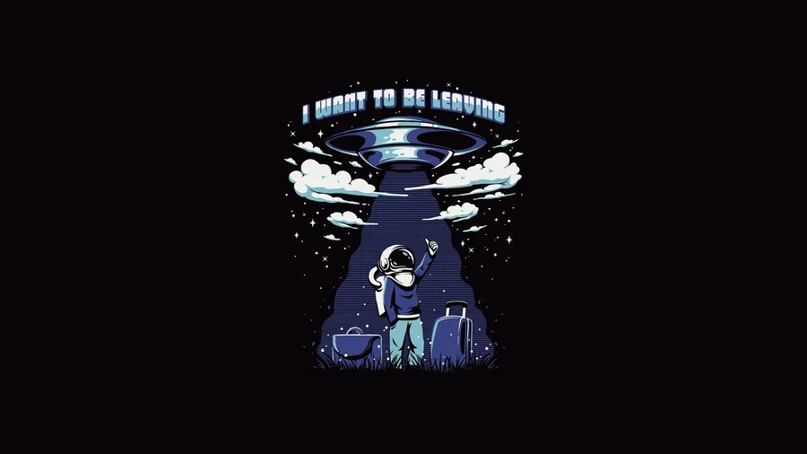 Black And White Astronaut Alien Spaceship Art Wallpaper -