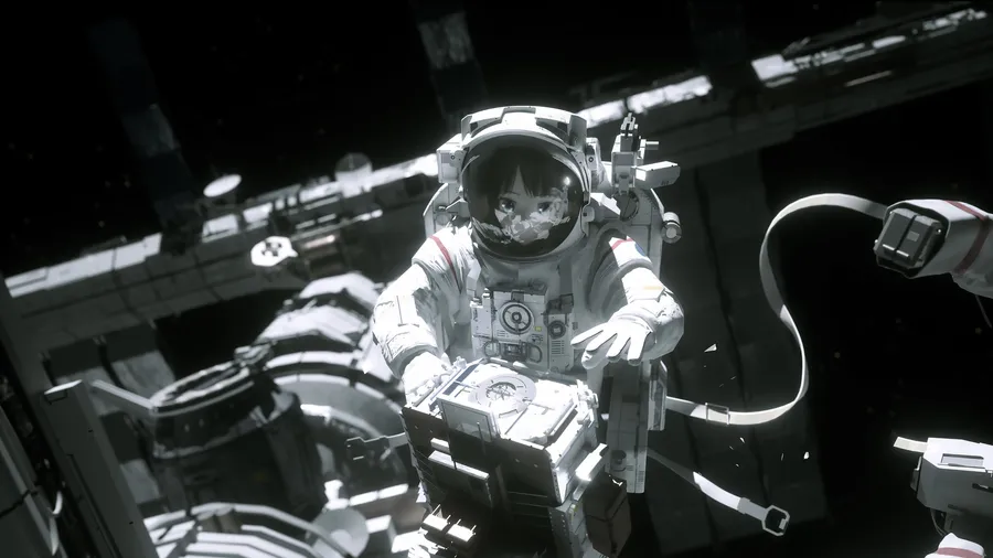Black And White Astronaut Starry Space Art Wallpaper -
