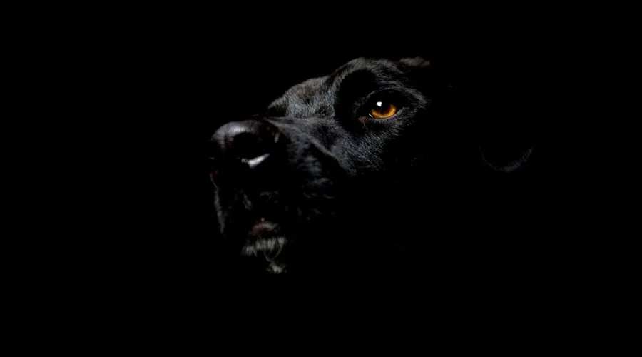 Glaring Black Pitbull With Glowing Eyes Wallpaper -