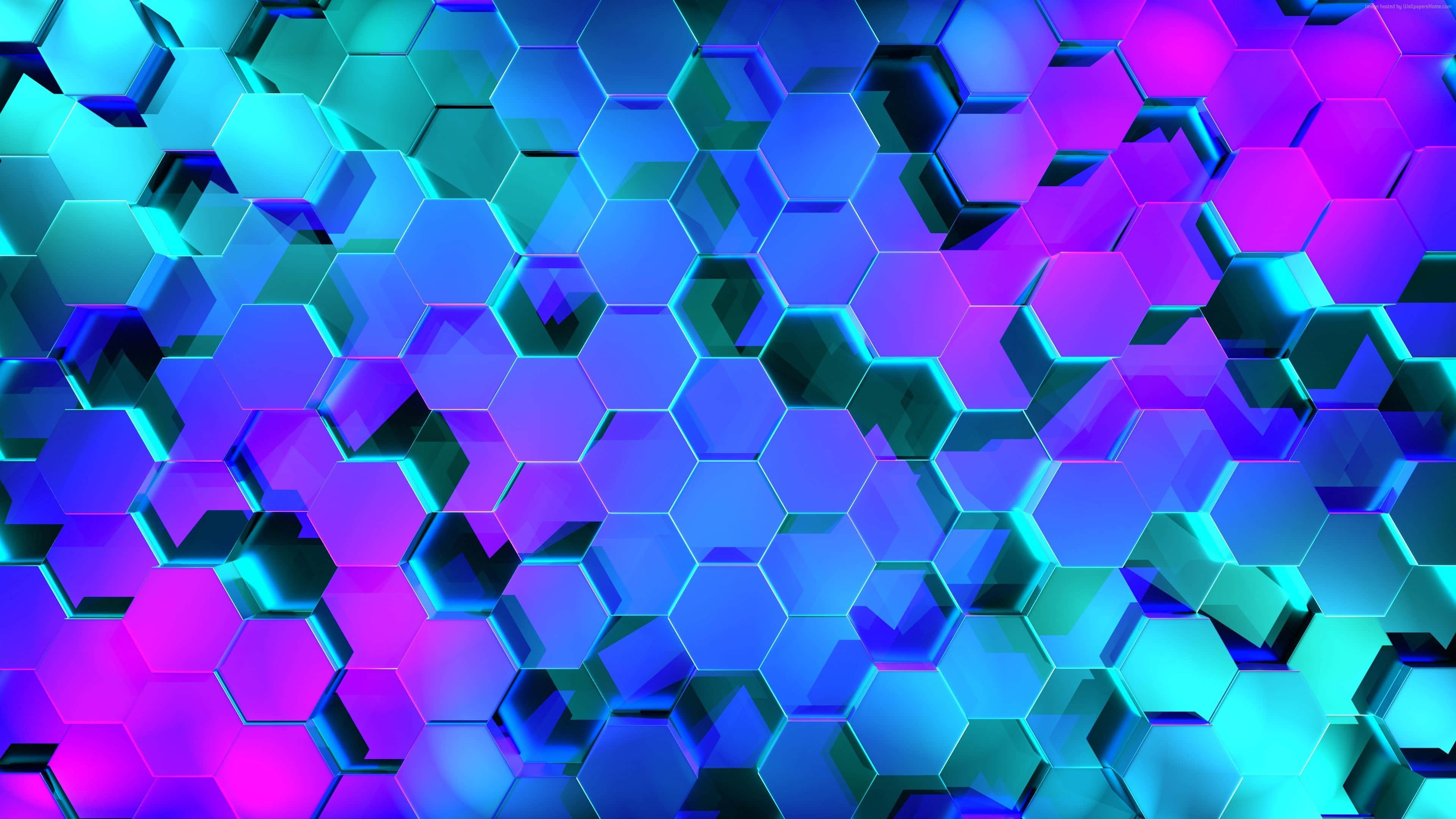 Blue And Purple Hexagon Patterns Wallpaper -