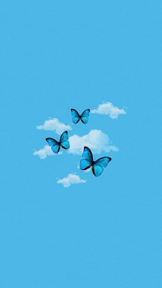 Blue Butterflies Flying In The Sky Wallpaper -