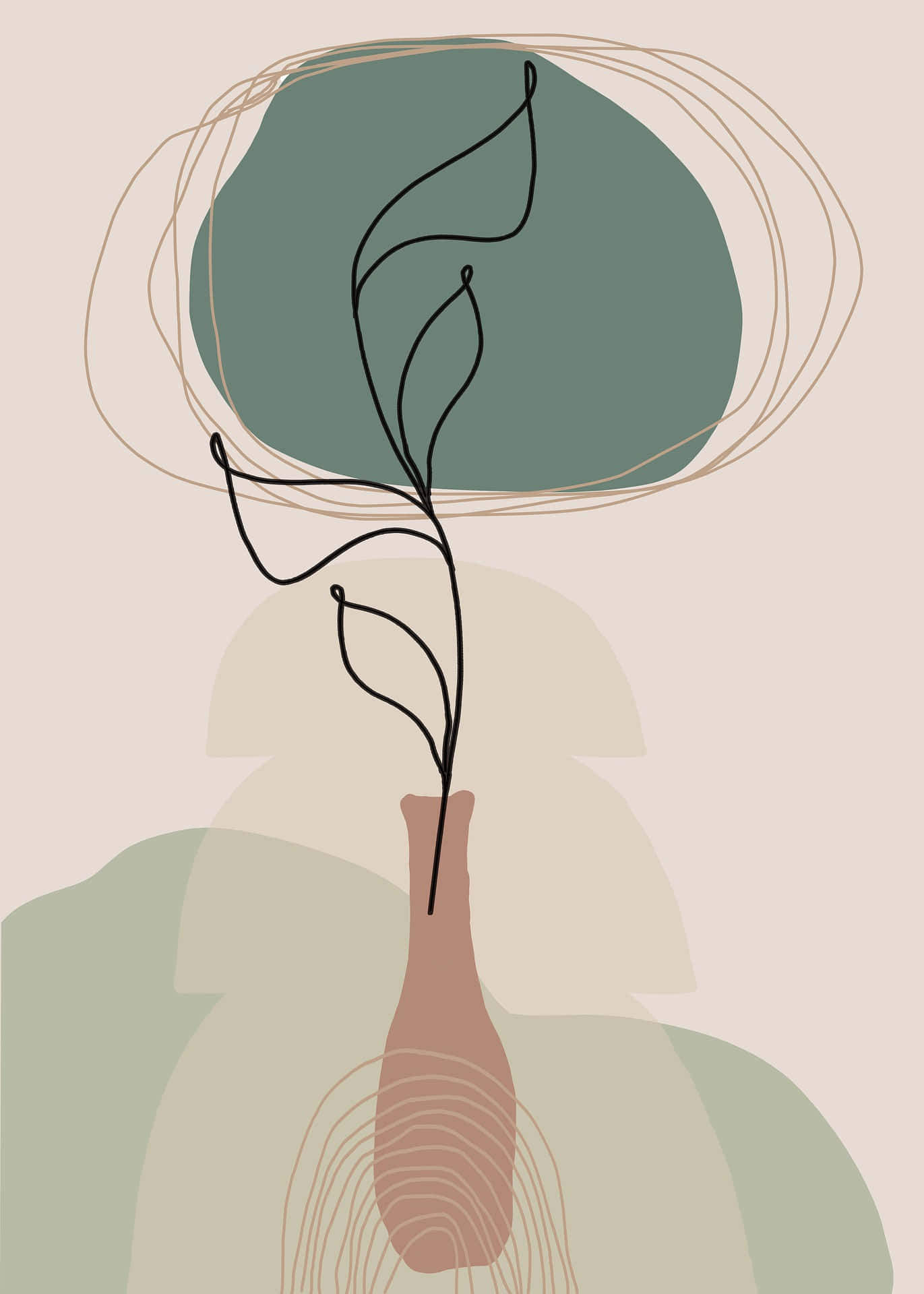 A Plant In A Vase On A Beige Background Wallpaper -
