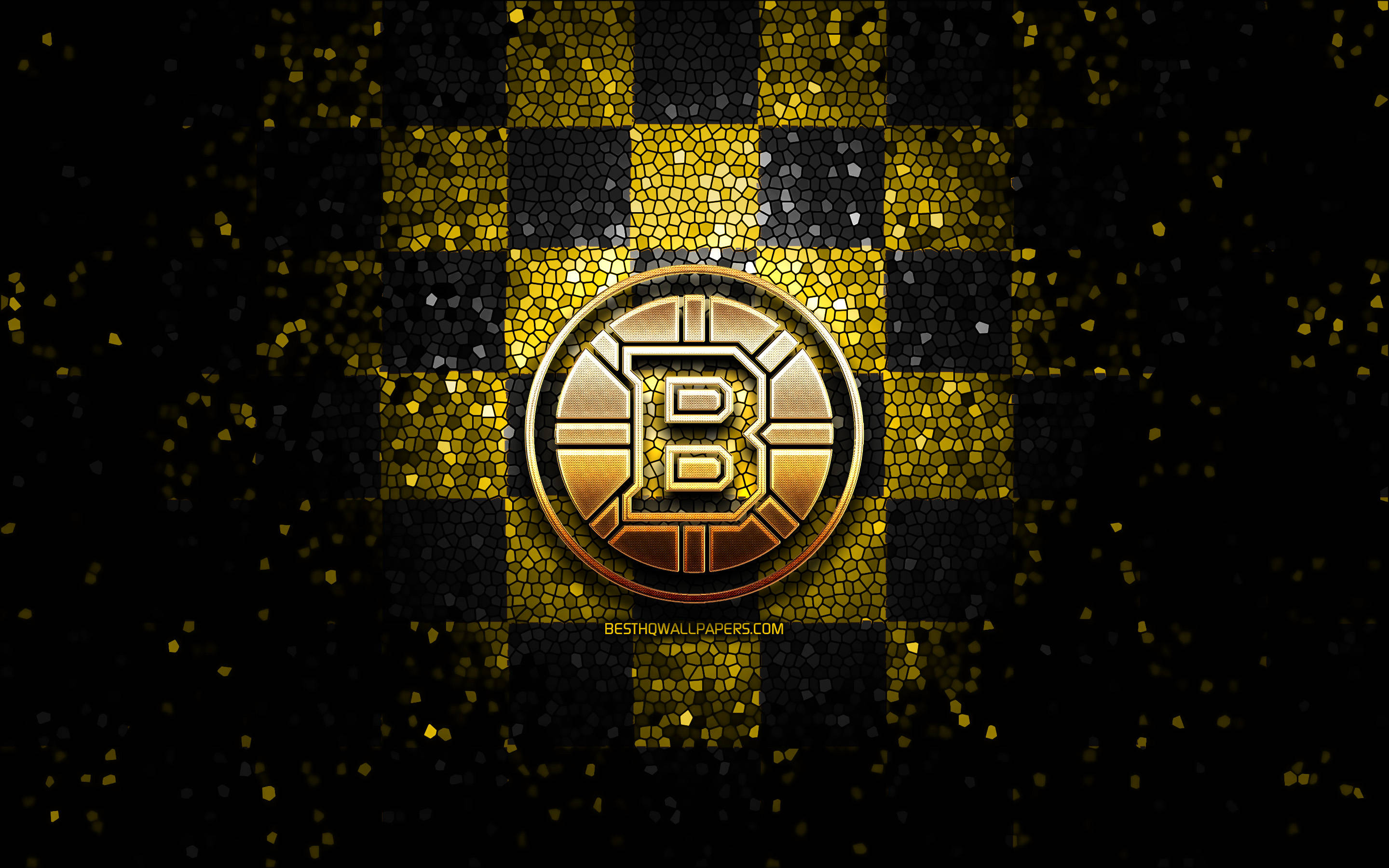 Boston Bruins Logo Glittery Checkerboard Wallpaper