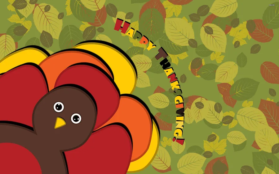 Cartoon Thanksgiving Turkey With Falling Leaves Wallpaper -