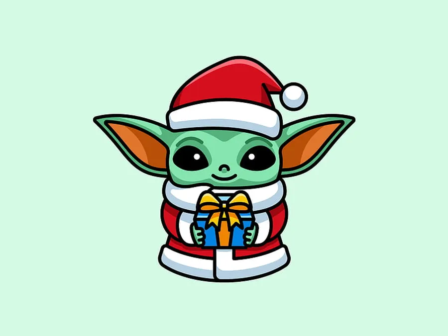 Cute Baby Yoda Christmas Drawing Wallpaper -