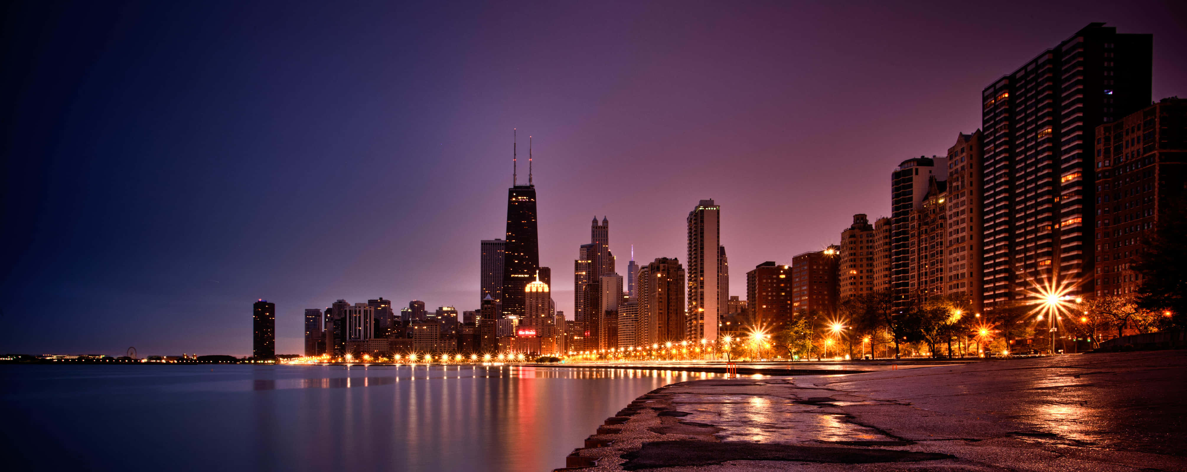 Chicago City Night By The Waterfront Wallpaper -