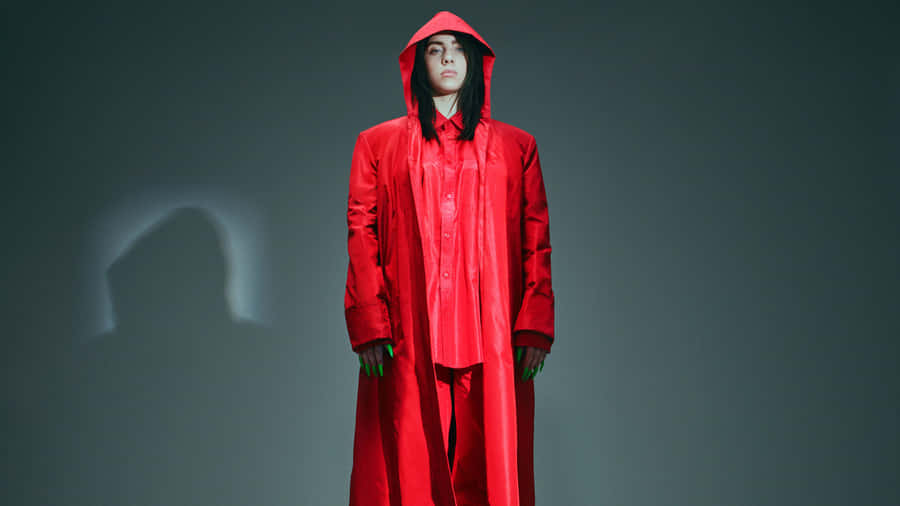 Girl Power! Billie Eilish Stands With Her Laptop Showing Her Influence And Success. Wallpaper -