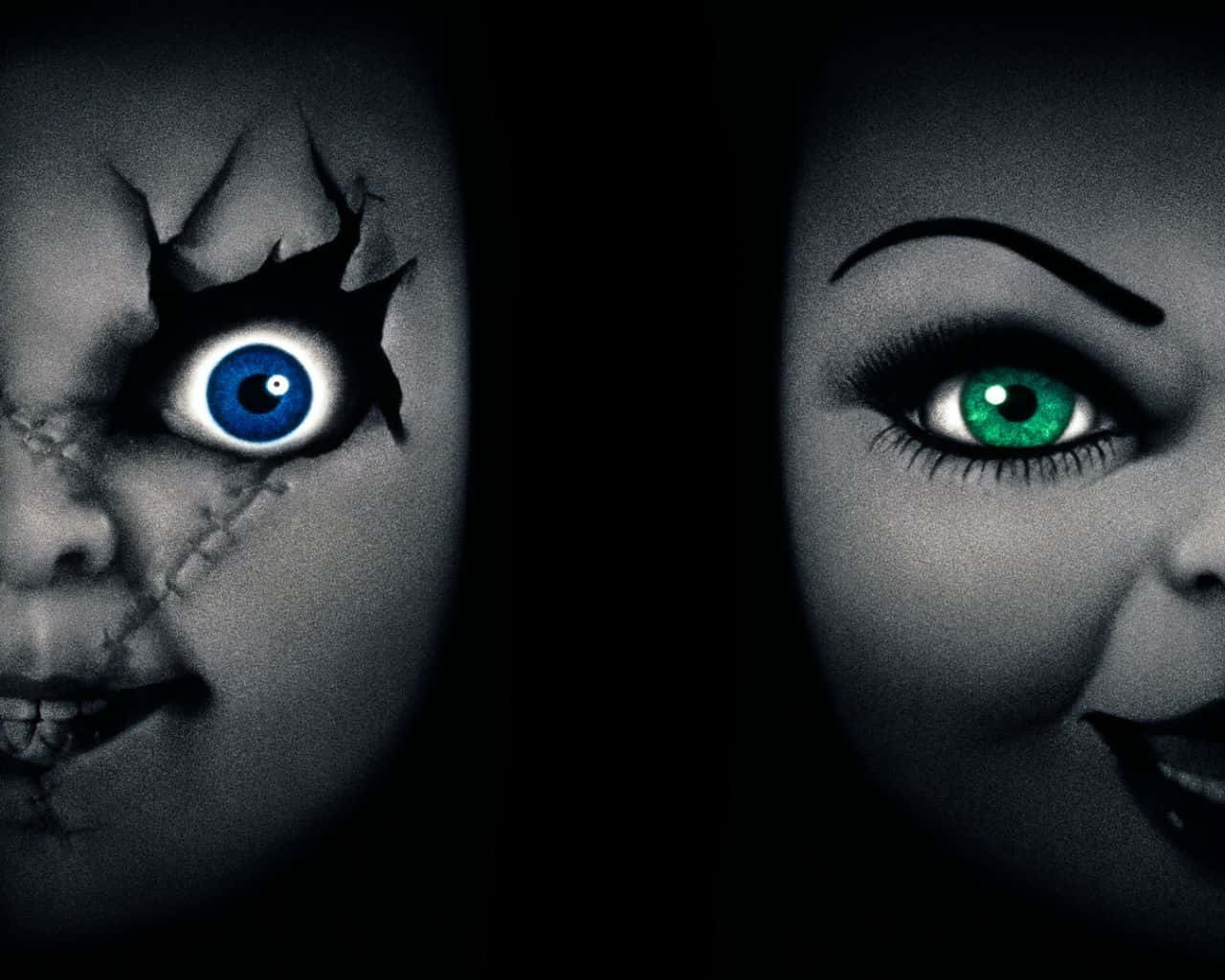 Chucky And Tiffany Blue And Green Eyes Poster Wallpaper -