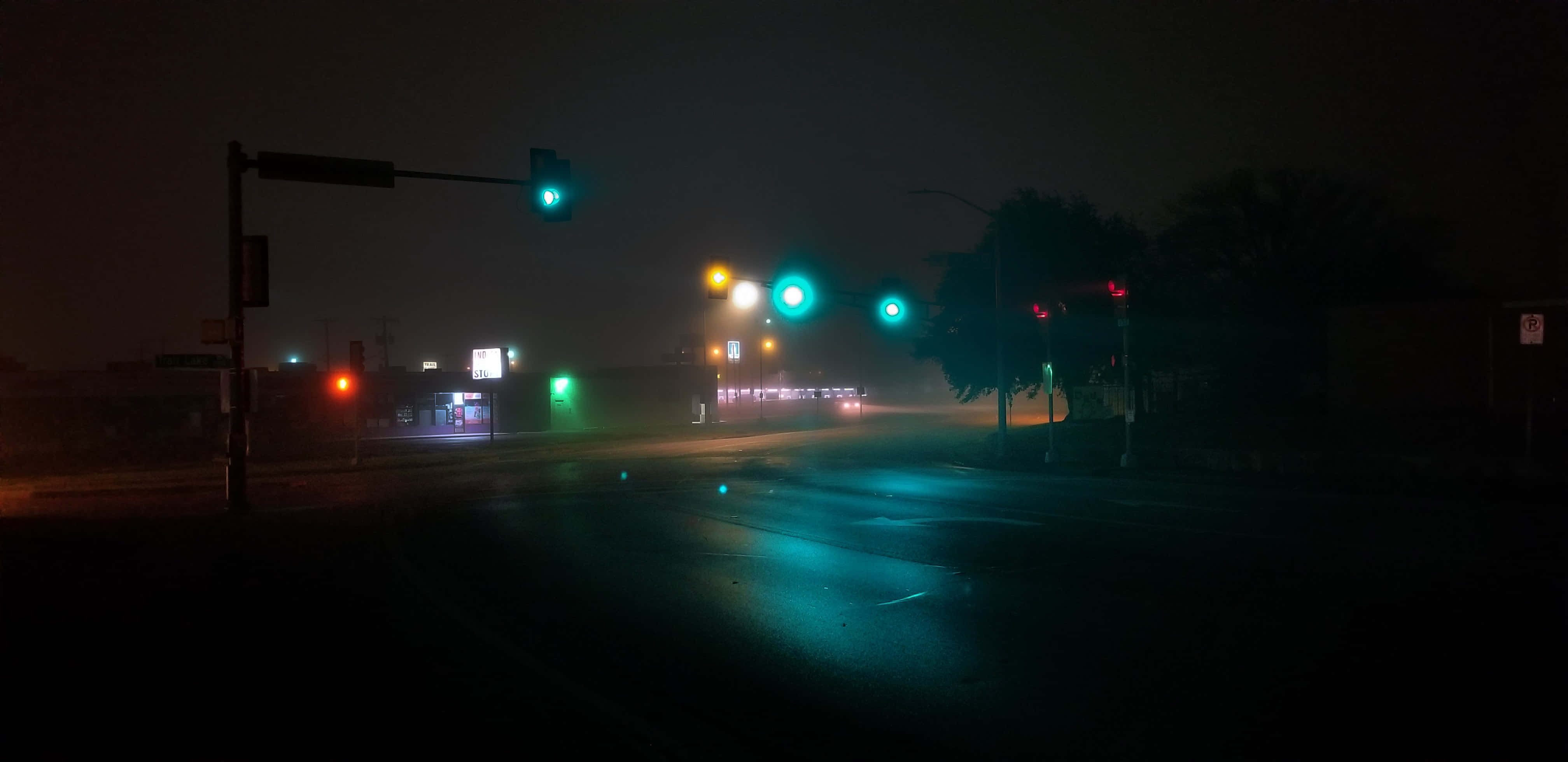A Street With A Street Light Wallpaper -