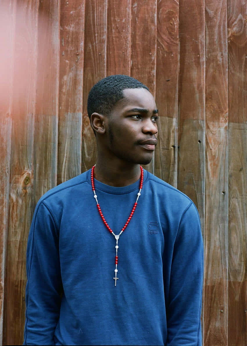 Contemplative Man Against Wooden Background Wallpaper -