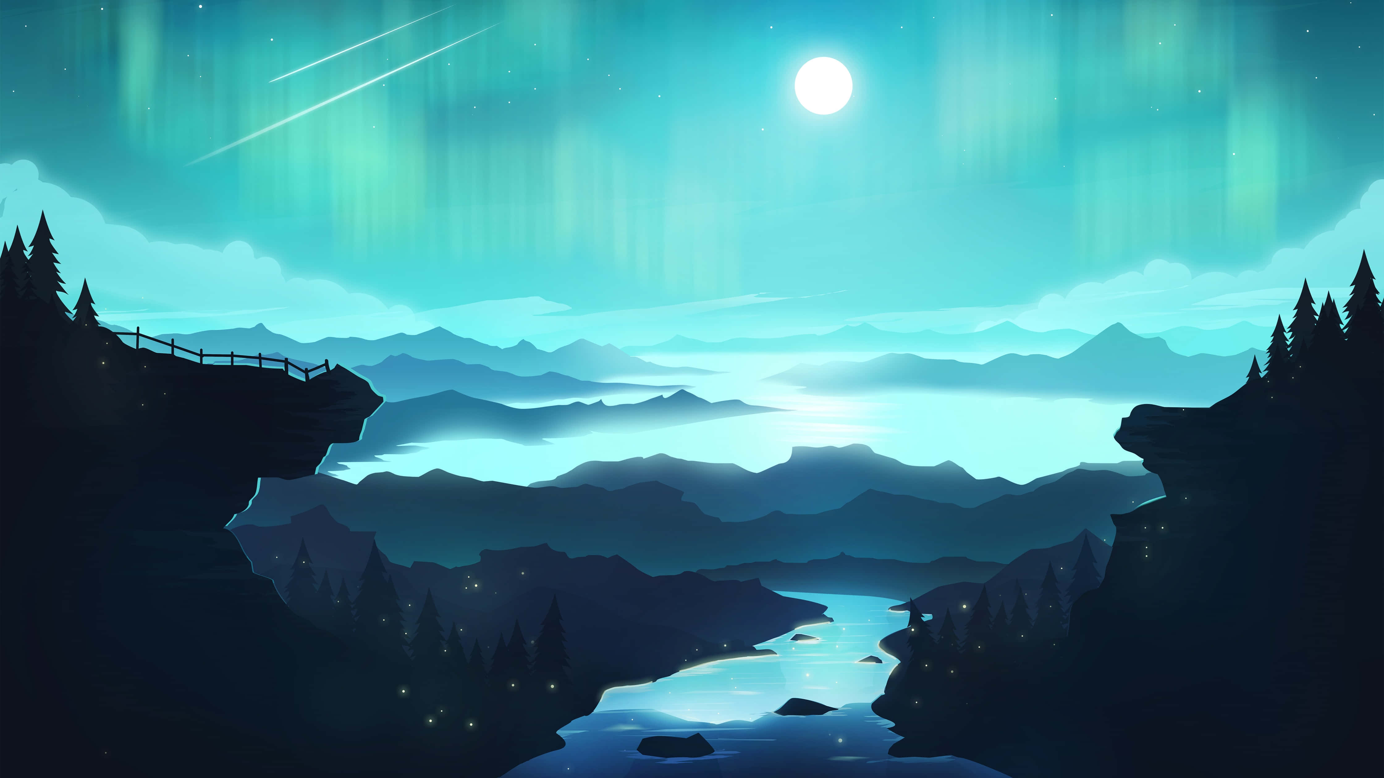 Coo Moon Landscape With River Wallpaper -