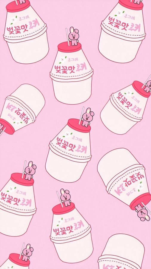Aesthetic Pink Kawaii Cultured Strawberry Milk Wallpaper -