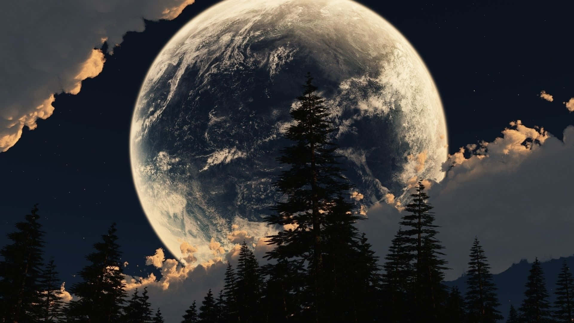 Experience A Beautiful Night Surrounded By The Glowing Light Of The Cool Moon. Wallpaper -