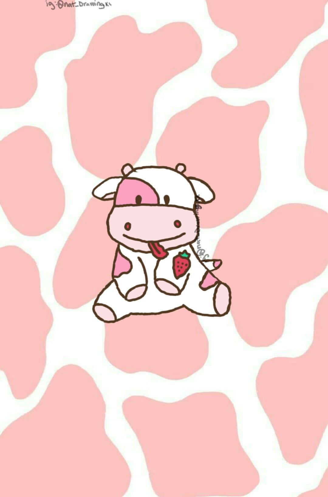 A Pink Cow With Strawberries Around It Wallpaper -