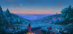 Enjoy A Peaceful Nature View With This Cute Anime-style Landscape Wallpaper -