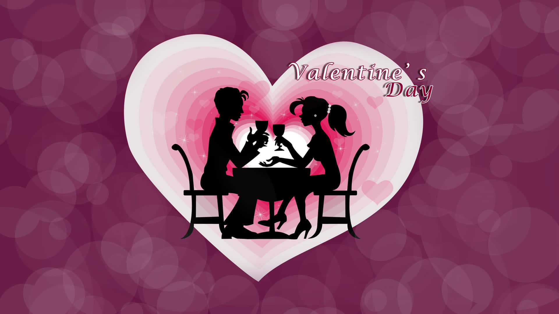 Cute Happy Valentine Day Silhouette Cartoon Wallpaper -