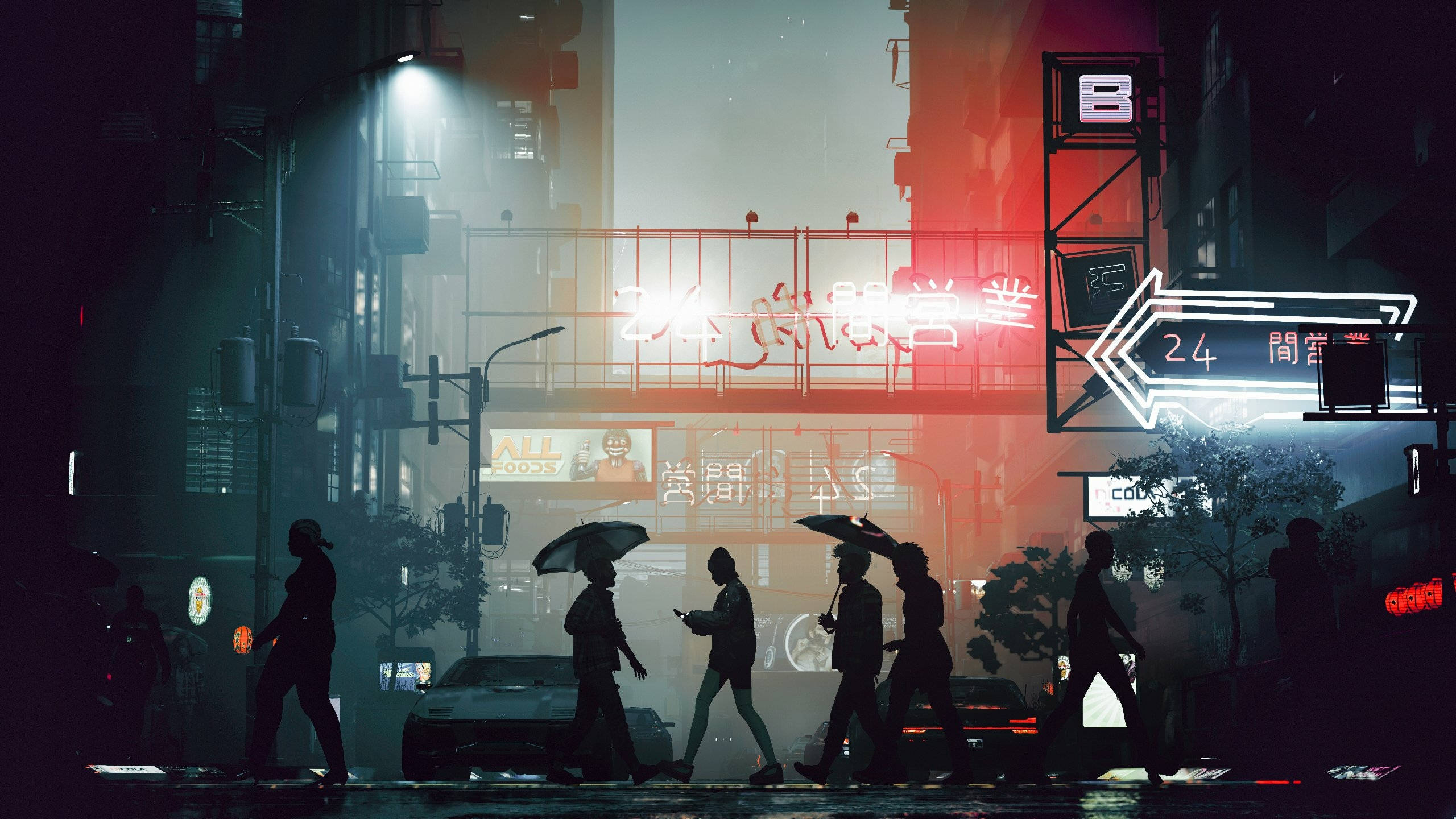 Cyberpunk 2560x1440 People Silhouettes Wallpaper -